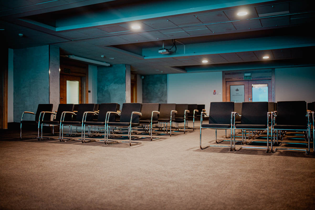 Nowoczesna sala konferencyjna na Mazurach o powierzchni 233 m2 z możliwością podziału na dwie mniejsze sale. Wyposażona w klimatyzację i najnowocześniejsze technologie audio-wizualne.