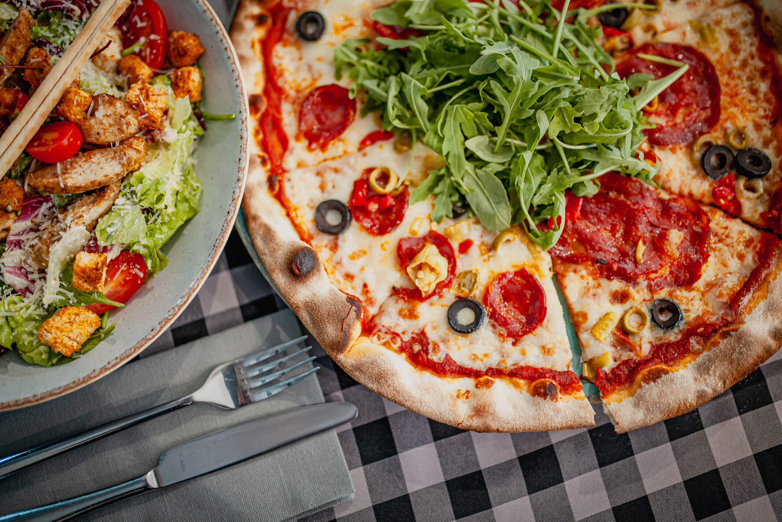 Całość doprawiamy dużą ilością aromatycznych ziół oraz wyjątkową oliwą, której smak i intensywność sami kontrolujemy, aby zapewnić Ci niezapomniane doznania kulinarnych podróży do Włoch, które przenieśliśmy dla Ciebie nad brzeg mazurskich jezior.